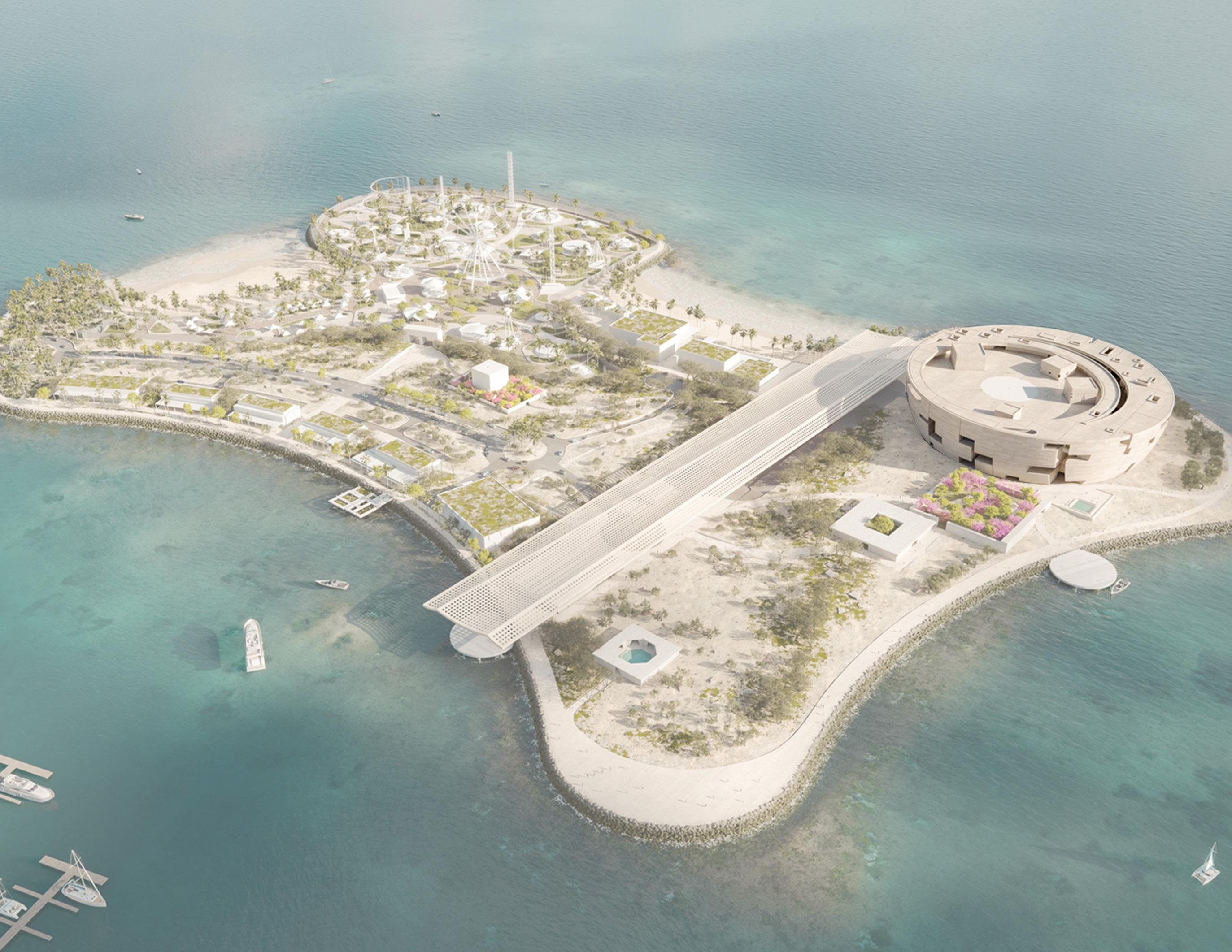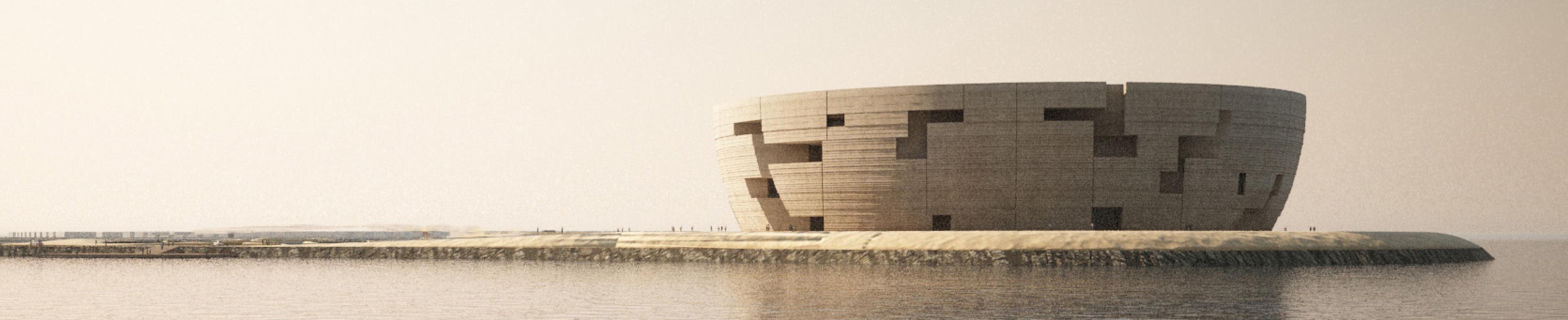 The reason behind choosing an island location is that it is the ideal location for the museum, and the museum provided the proper schedule envisioned for the island. Ancient building typologies, such as concrete structure and building geometry, form a physical unit to create monolithic expression. Besides, the concrete finish to the spherical geometry expresses the construction process by dividing the outer shell by movement or pouring joints, showing framework patterns. From a sustainability point of view, the building has been designed with the desert climate and its specific conditions in mind.