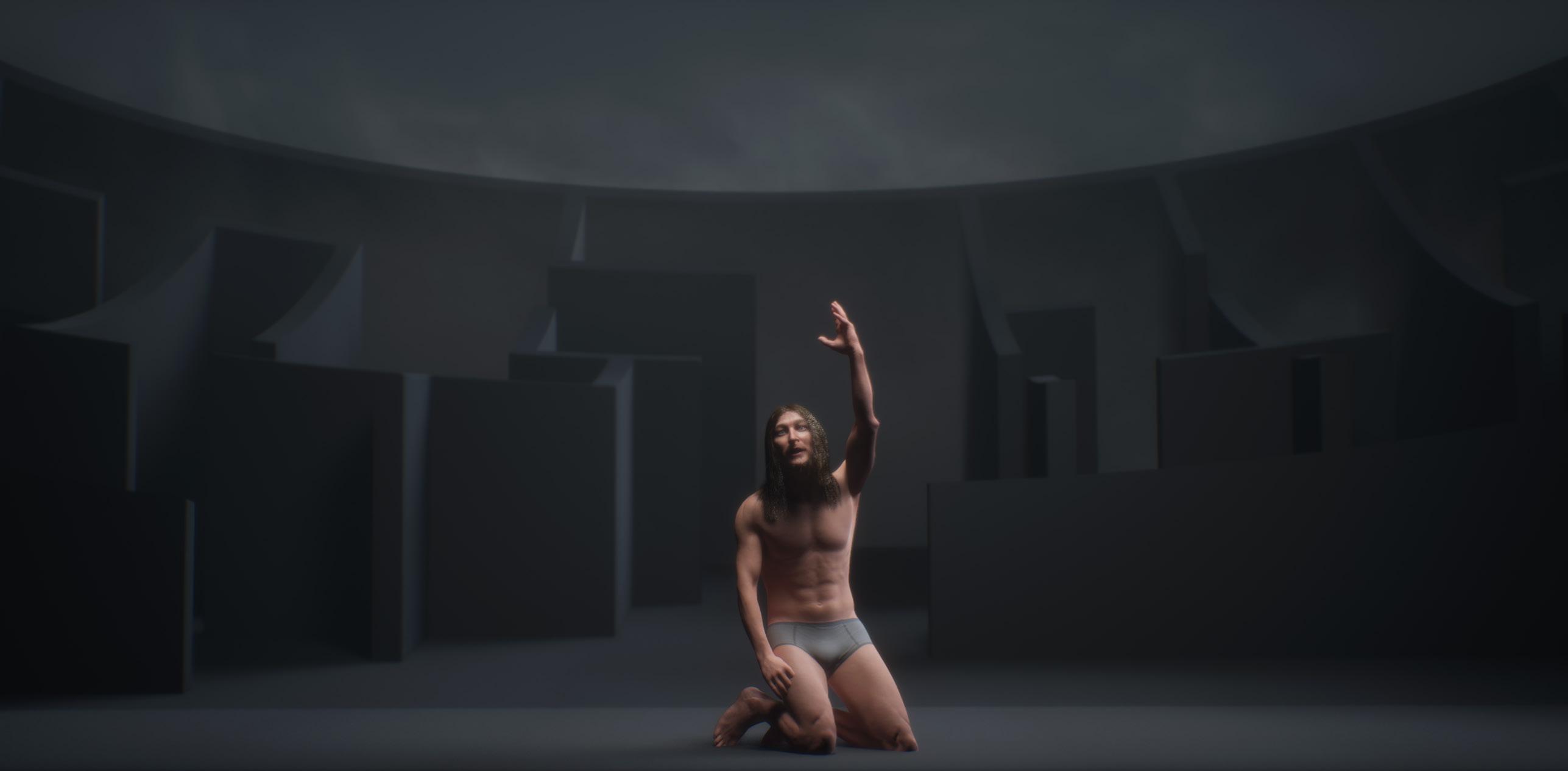 Material density, shadow, and limited visibility define the interior, creating a continuous sense of uncertainty and spatial pressure. Light is introduced selectively from above, guiding orientation and emphasizing vertical progression. The project is developed as a short cinematic video, demonstrating how digital tools, performance, and architectural design can converge to produce immersive spatial narratives