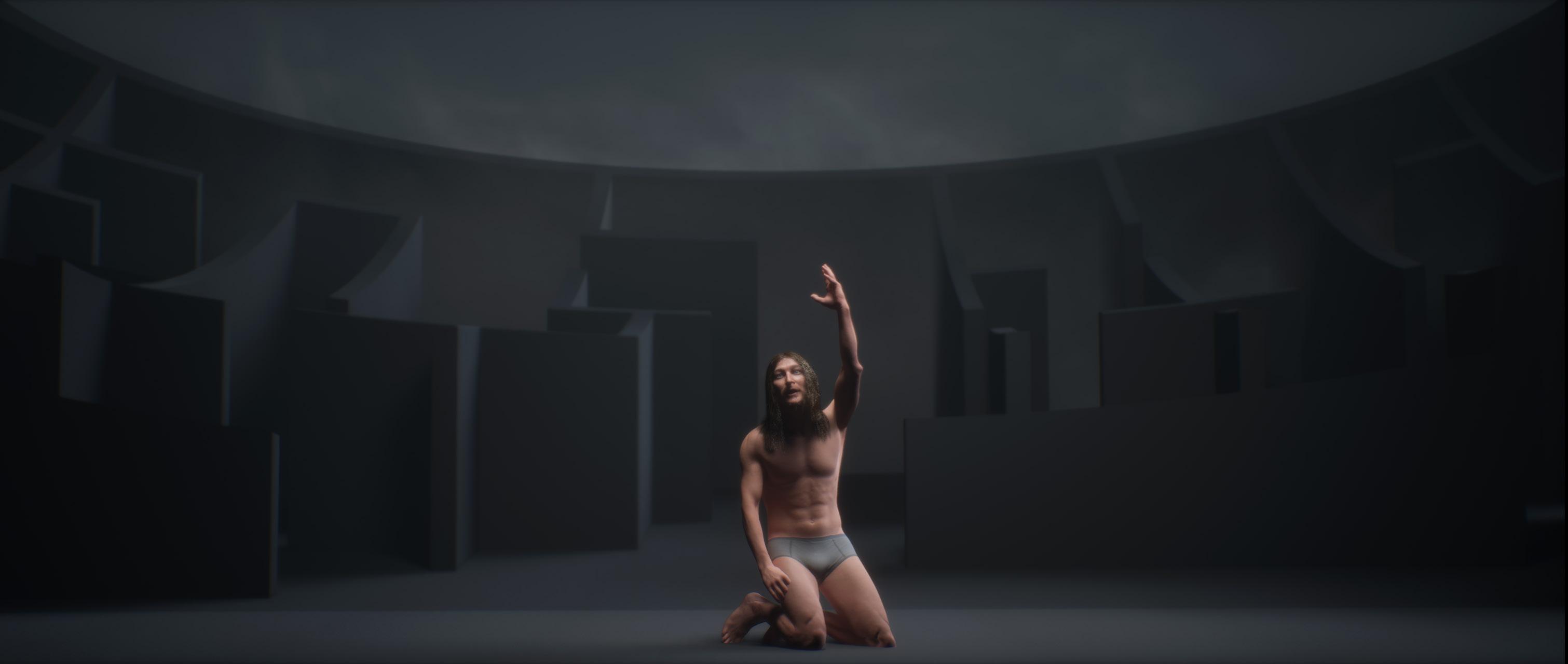 Material density, shadow, and limited visibility define the interior, creating a continuous sense of uncertainty and spatial pressure. Light is introduced selectively from above, guiding orientation and emphasizing vertical progression. The project is developed as a short cinematic video, demonstrating how digital tools, performance, and architectural design can converge to produce immersive spatial narratives.
