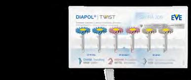 Prophylaxis Prophylaxe Acrylics Prothesenkunststoff Titanium Titan NEM Alloys NEM-Legierungen Gold / Amalgam Gold / Amalgam 3D Printing Hybrid Material 3D-Druck Hybridmaterial 3 PAGE Seite GRIT KÖRNUNG PROCESSING STEPS BEARBEITUNGSSTUFEN ABRASIVES SCHLEIFMITTEL particularly suitable besonders geeignet VC very coarse sehr grob Diamond impregnated Diamantiert Disposable Einmalgebrauch suitable geeignet C coarse grob SIC Silicon carbide Siliziumcarbid Recommended RPM Empfohlene Drehzahl M medium mittel ALOX Aluminium oxide Aluminiumoxid Packaging unit Verpackungseinheit F fine fein SIO Silicon oxide Siliziumoxid EF extra fine extra fein DIACOMP® plus 9 2 M F EASYCOMP10 SIC 2 M F ECOCOMP11 SIC 2 M F COMPOSOFT11 ALOX 3 C M F DIAPOL® 12 3 C M F DIACERA 13 2 M F DIAPRO 14 2 M F ECOCERAM15 SIC 3 C M F UNIVERSAL15 SIC 1 M EVEFLEX 16 SIC 3 C M F FLEXI-DIA 17 4 C M F EF FLEXI-D 17 ALOX 4 C M F EF EVEBRUSH18 SIC 1 F BRACKET plus 18 SIO PROPHYCLEAN19 SIO 2 C M DIASTRIPS19 3 C M F CERASTONE green 8 SIC F CERASTONE white 8 ALOX EF