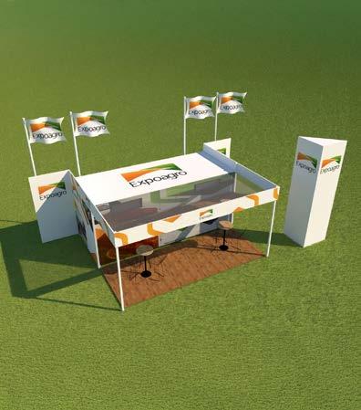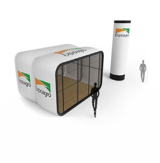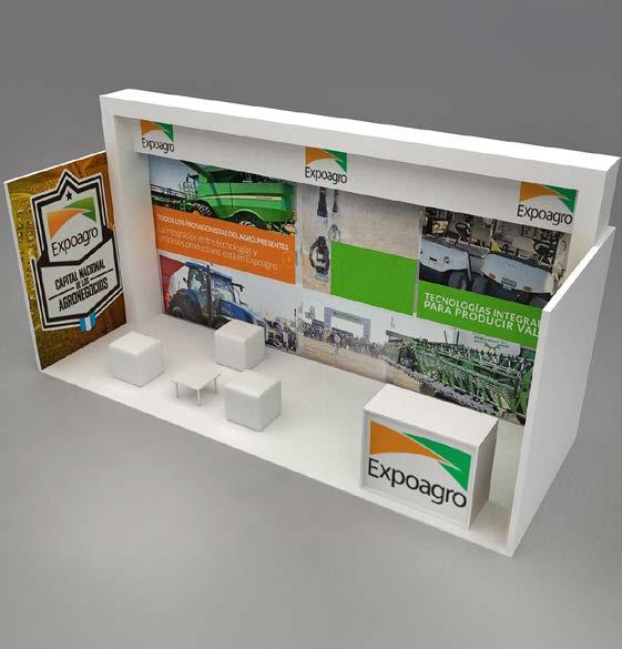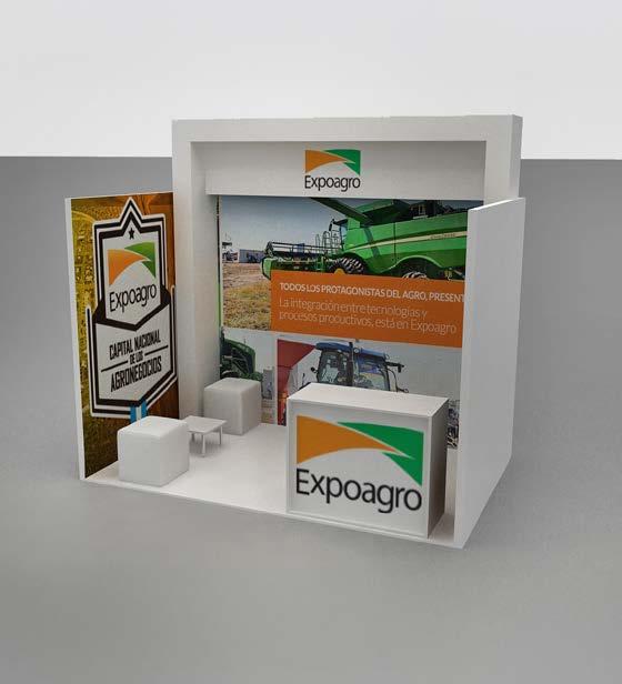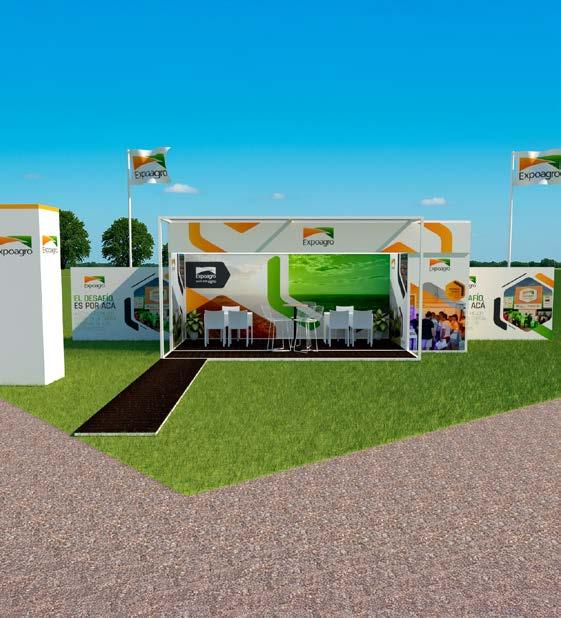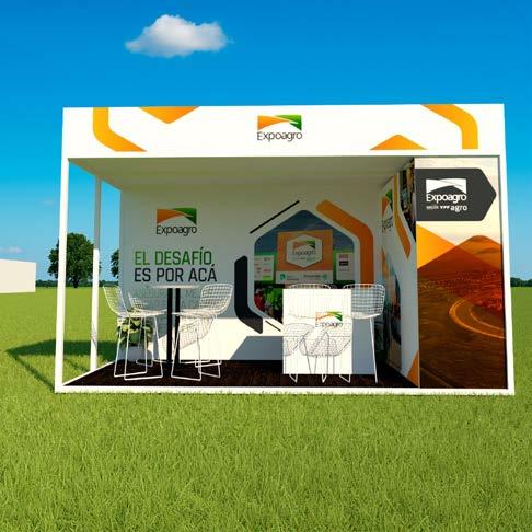 • Una carpa de 10 m x 12 m, instalada por Expoagro, con equipos de aire acondicionado, piso alfombrado, cielo raso, laterales con blackout e iluminación básica.