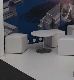 El stand se entrega con los paneles divisorios, piso alfombrado, spots de iluminación, un tomacorriente y cenefa.