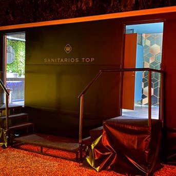 El módulo Montecarlo de Sanitarios Top posee unas dimensiones más reducidas que el resto de los otros módulos, dándole cualidades insuperables para ambientes reducidos, sin dejar de tener las mismas cualidades técnicas para brindar el mejor servicio en sanitarios móviles de lujo del mercado. A tener en cuenta, es que este módulo es de damas o caballeros, sin tener subdivisión. Este baño posee 2 inodoros (eléctrico) y 1 bacha de porcelana de primeras marcas, decorados y retroiluminados para lograr un ambiente cálido, música funcional, pisos son de madera LG y paredes empapeladas con la colección de Muresco. La calidad y lujo se percibe cuando uno ingresa en estos baños químicos y se refuerza con el servicio de mantenimiento presente durante todo el evento.