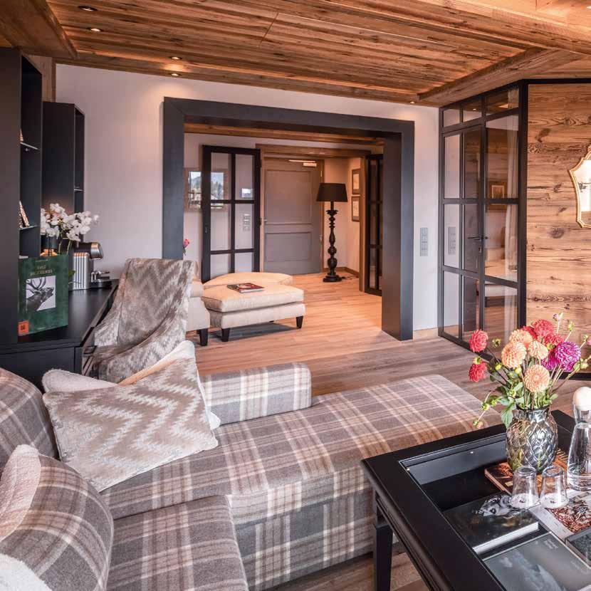 Im edlen Stil des Hauses entfaltet sich eine Ästhetik, die den zeitlos-modernen Alpin Chic in vollendeter Perfektion verkörpert – eine exquisite Symbiose alpiner Tradition und urbaner Raffinesse. Die kunstvoll gestalteten Zimmer und Suiten bieten eine Oase des Wohlbefindens, geprägt von Geborgenheit, Großzügigkeit und authentischer Gastfreundschaft. Weitläufige Glasfronten durchfluten die Räume mit natürlichem Licht, während erlesene Materialien wie edles Holz, Loden und Marmor eine perfekte Harmonie bilden. High-Tech-Elemente ergänzen den eleganten Stil und verleihen der Atmosphäre eine unverkennbare Aura exklusiver Eleganz.