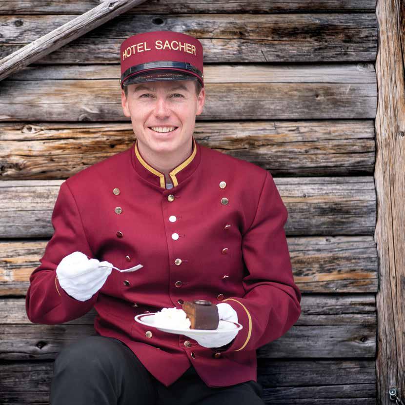 Und selbstverständlich dürfen Sie bei uns ein Stück Original Sacher-Torte genießen, mit Schlagobers, wie es sich gehört.