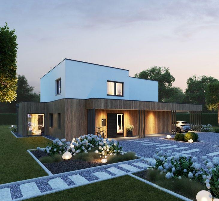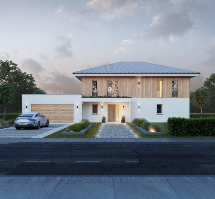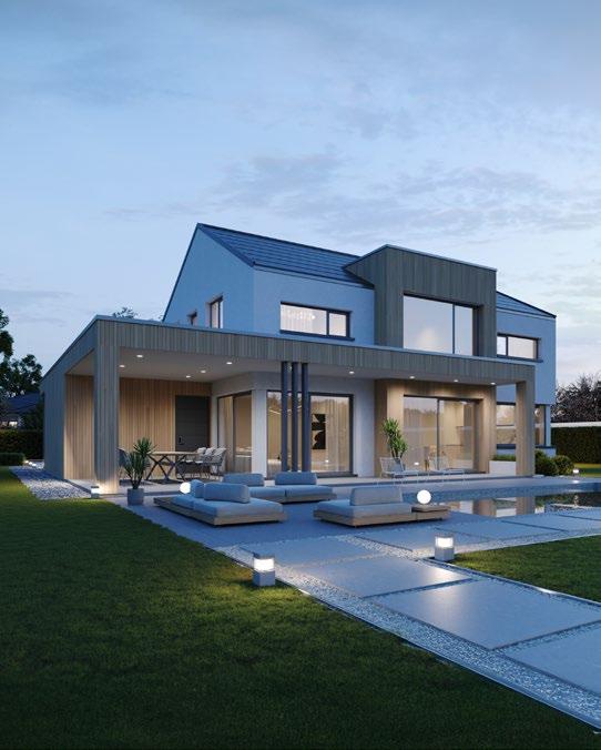 zum stilvollen Lebensmittelpunkt. Der L-förmige Grundriss schafft geschützte Außenbereiche und verbindet modernes Wohnen mit komfortabler Großzügigkeit.