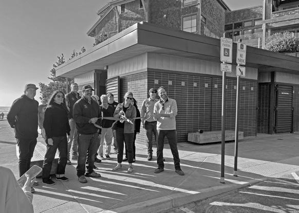Ribbon-cutting at the reconstruction of Cape Kiwanda parking lot, with the new restrooms as a backdrop.