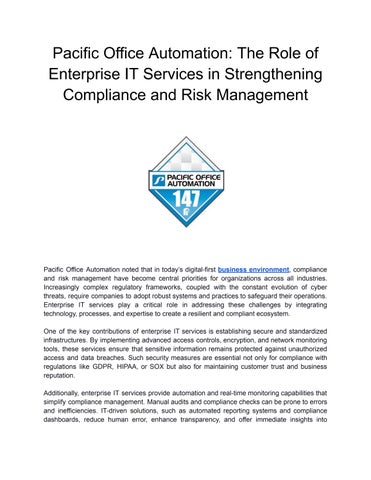 Pacific Office Automation, established in 1976 and headquartered in Beaverton, Oregon, has grown from a small office equipment provider into the largest independently owned office technology dealer in the United States. With consistent growth spanning nearly five decades, the company operates over 40 branch locations across 11 states. Its team of over 1,450 professionals works together to provide clients with personalized local service and the capabilities of a large enterprise. The company’s mission, “to make office printing and IT easy,” reflects its dedication to simplifying how businesses manage their technology. Pacific Office Automation provides a range of services to enhance efficiency and streamline operations. These include Managed Print Services, Enterprise IT Solutions, Document Management, Unified Communications, Workflow Optimization, and Office Equipment Sales and Support. The company delivers dependable and high-quality technology solutions through strong partnerships with respected global brands, including Ricoh, HP, Canon, Konica Minolta, Lexmark, and Sharp. Pacific Office Automation serves a variety of industries, including healthcare, education, finance, government, and manufacturing. Its ability to develop scalable solutions tailored to each client’s needs is a key part of its approach. Whether providing secure printing systems for healthcare facilities or enabling digital learning for educational institutions, the company focuses on delivering results that align with the goals of the organizations it serves. Customer service is at the heart of Pacific Office Automation’s operations. Employees are encouraged to take ownership of their work and ensure a high level of service. This strong internal culture has led to long-lasting client relationships, a high customer retention rate, and consistent referrals.