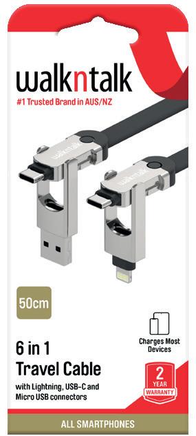 6 IN 1 TRAVEL 50CM CABLE RRP $35 CHARGES MOST DEVICES TRAVEL FRIENDLY
