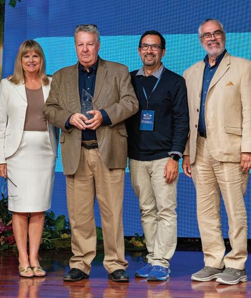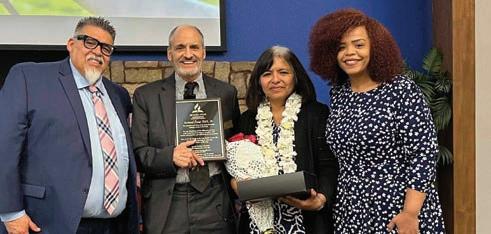 De izquierda a derecha: El presidente de NUC, Carlos Camacho, el pastor Peter Neri, su esposa Jenny Neri y la secretaria ejecutiva de NUC, Chanda Nunes-Henry, posan juntos después de que los Neris recibieran una placa y un regalo especial de la Conferencia NevadaUtah en honor a la jubilación del pastor Neri.