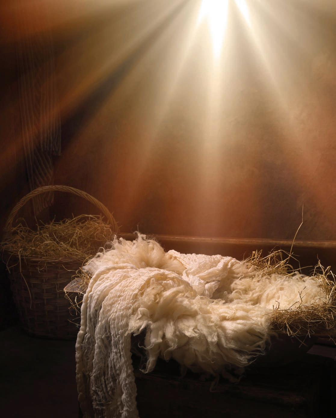 de esos bien conocidos pasajes proporciona un hermoso título a la imagen familiar de la tarjeta de Navidad, del niño Jesús nacido en el pesebre.