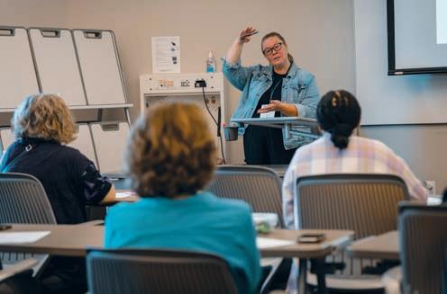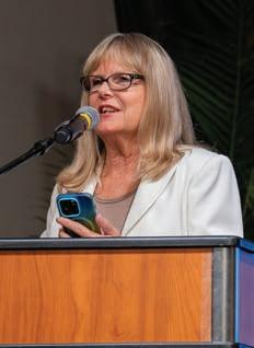 La Secretaria Ejecutiva de SECC, Patty Marrufo, anuncia el nuevo papel de Berumen durante el Día de Desarrollo Profesional de Todos los Pastores.