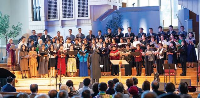 ARRIBA: Reuniendo voces de las nueve iglesias, los coros del Ministerio Inglés (izquierda) y del Ministerio Coreano (derecha) unidos en alabanza a través de música especial.