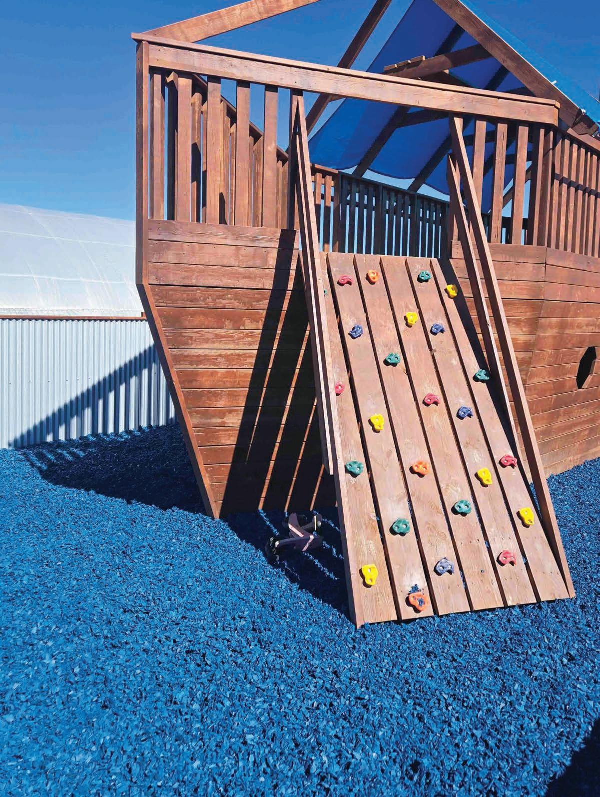 Después de que el viaje misionero llegó a su fin, el trabajo continuó en el arca. El pastor Crosby terminó de teñir la madera y agregó un tobogán, un muro de escalada y una cubierta superior.