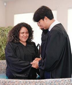 IZQUIERDA: Dos personas fueron bautizadas en la Iglesia Olímpica Coreana.