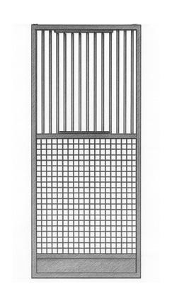 Stall Front Rectangular Yoke. HVH Design on Stall Front Bottom (Center Name Plate and Shavings Guard) with Mesh Door Bottom.