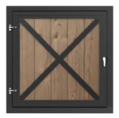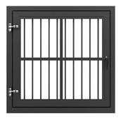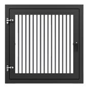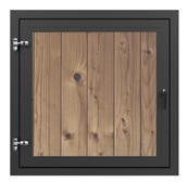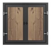 Vertical Lumber In-Fill., HGH Door Design (Center Name Plate, 1" Grills, and Shavings Guard on Door). Grilled Feed Door.