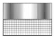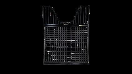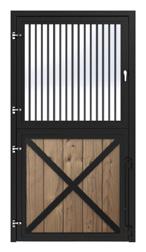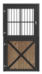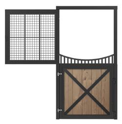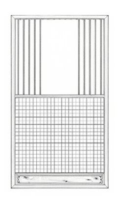 Rectangular Yoke. HVH Design on Stall Front Bottom (Center Name Plate and Shavings Guard) with Mesh Door Bottom.