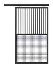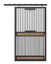 1J Centered Sliding Stall Front Rectangular Yoke, HVH Design (Center Name Plate, and Bottom Shavings Guard, and 1" Bars on Door Bottom