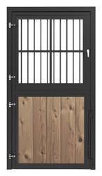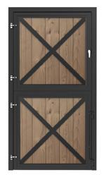 1D - Centered Sliding Stall Front Vertical Lumber In-Fill, V-Yoke, and Center Name Plate and Shavings Guard on Door