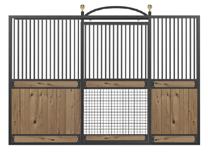 Arched Topper, Brass Finials, HVH Design (Center Name Plate and Bottom Shavings Guard) with Welded Mesh on Stall Door Bottom