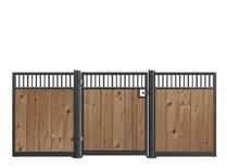 1C Centered Sliding Stall Front Vertical Lumber In-Fill with Hinged, Fold-Down Rectangular Yoke