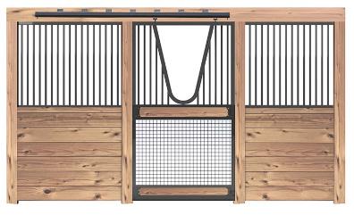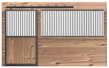 1R Off-Centered Sliding Stall Front Vertical Lumber In-Fill and Welded Mesh on Stall Door Bottom