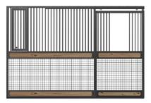 Stall Front Rectangular Yoke. HVH Design on Stall Front Bottom (Center Name Plate and Shavings Guard) with Mesh Door Bottom.