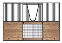 Stall Front Rectangular Yoke and Complete HMH Design on Stall Front Bottom (Center Name Plate, Welded Mesh, and Shavings Guard Bottom)