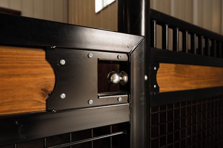 Our hinged stall fronts are equipped with heavy-duty stainless steel rod hinges that are fully adjustable serviceable. Our easy-to-use plunger latch prevents pinched fingers or doors stuck in a closed position. The sky is the limit when it comes to designing your European-styled stall fronts.