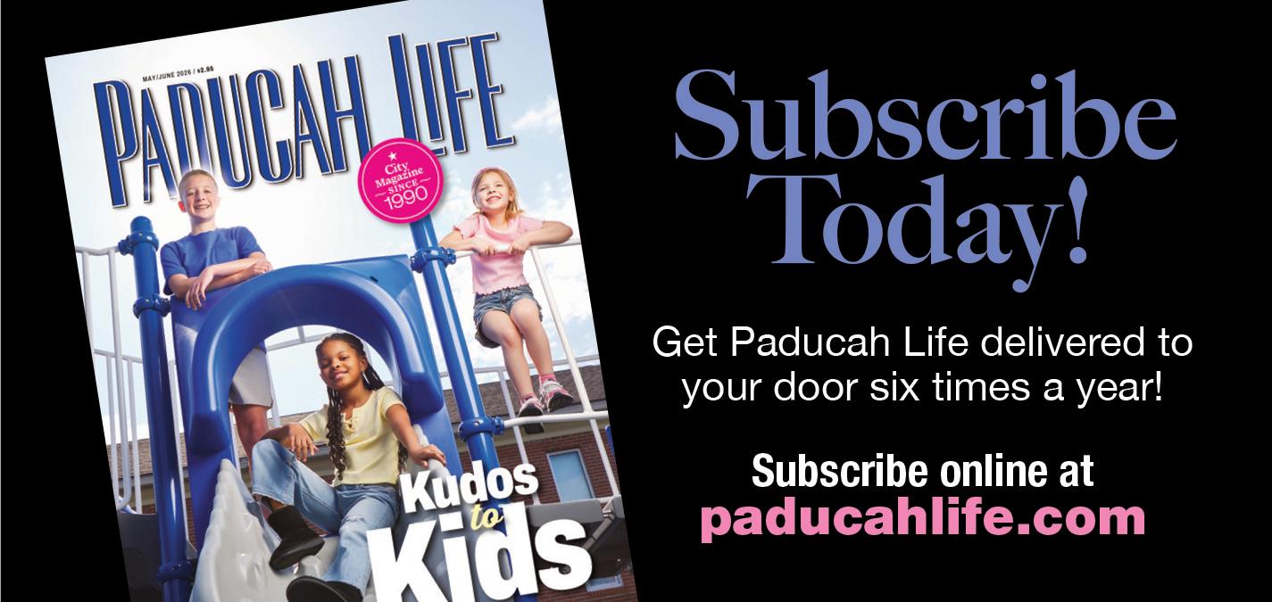 Paducah Life is published six times a year for the Paducah area. All contents copyright 2026 by Mazzone Communications. Reproduction or use of the contents without written permission is prohibited. Comments written in this magazine are those of the authors and do not necessarily reflect the opinion of the ownership or management of Paducah Life. Subscription rate is $29.95 for six issues. Subscription inquiries, all remittances and all advertising inquiries should be sent to Paducah Life, 2780 D New Holt Rd. #346, Paducah, KY 42001.