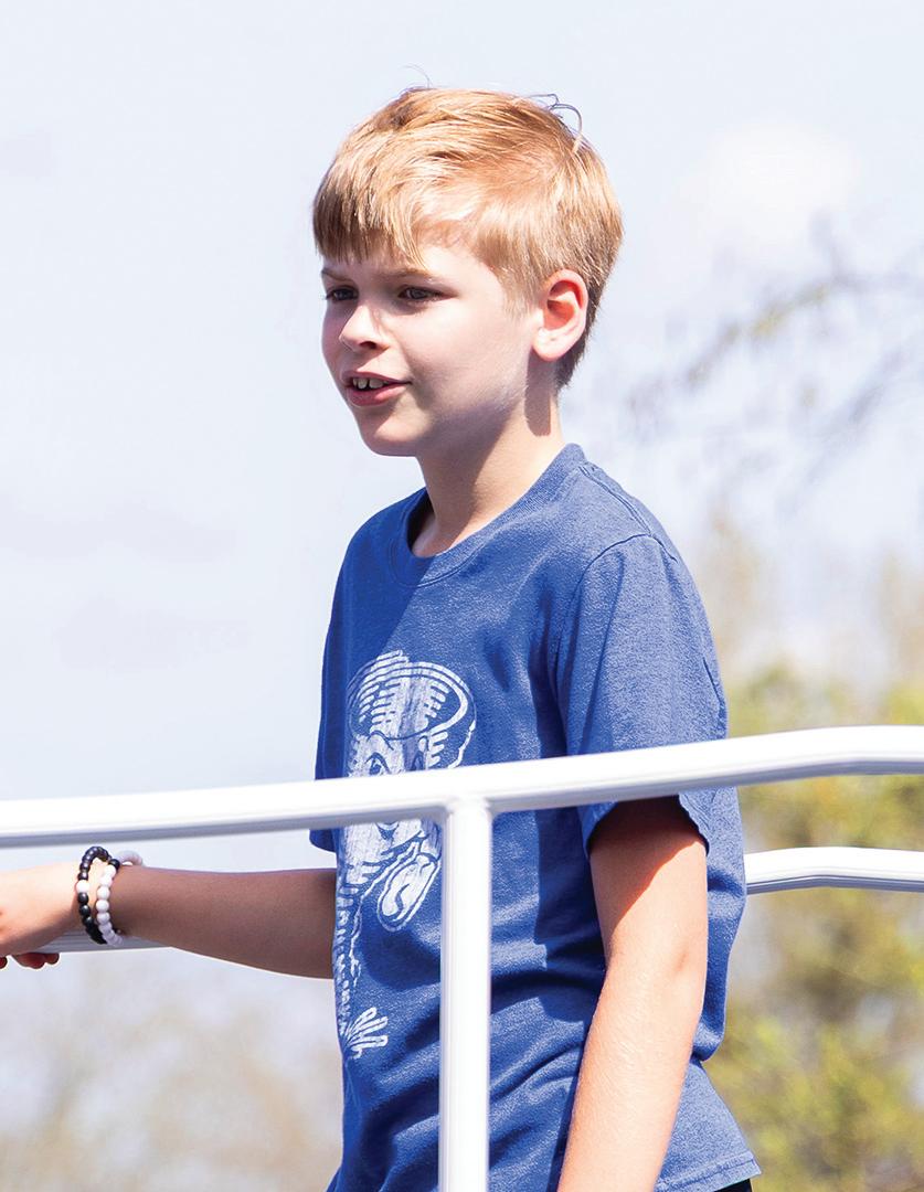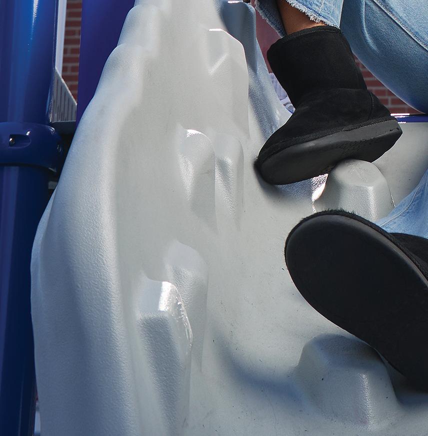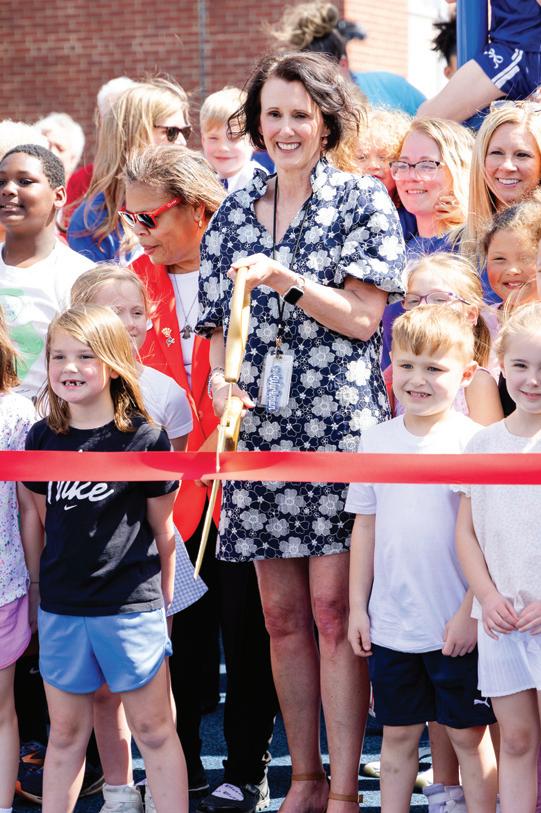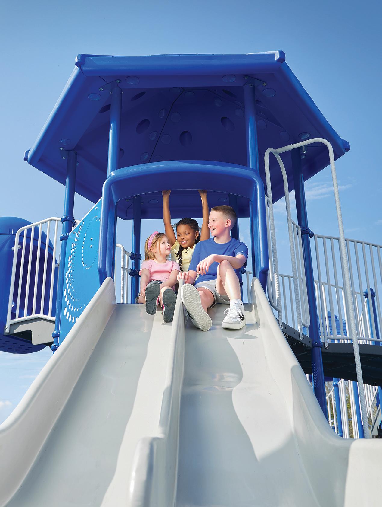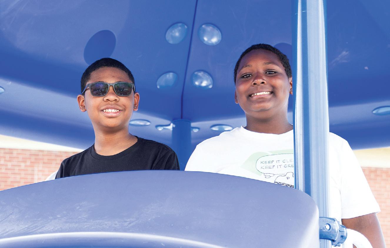 With the K-2 playground on hold due to the foundation grant, the committee shifted gears and broke ground on an entirely new play space for the third through fifth students. “We started at nothing and we fully funded that playground without any grants, just with the help of donors and sponsors. Now, the older kids have their own play space, but we preserved green space too, so that they have room to run and still support other activities,” Natalie proudly shared. In short, the PTO fully designed and paid for the 3-5 playground inclusive of the pour-inplace foundation through the help of local community partners and parent support. No small feat! This space is already well-loved by the students as it provides them with ample room to romp and play in all sorts of different and creative ways, but still gives them equipment to climb and crawl on. It’s easy to think that the older students don’t need as much in the way of physical engagement, but the specialized and intentional appliances in the 3-5 playground have their growth and development front and center.
