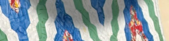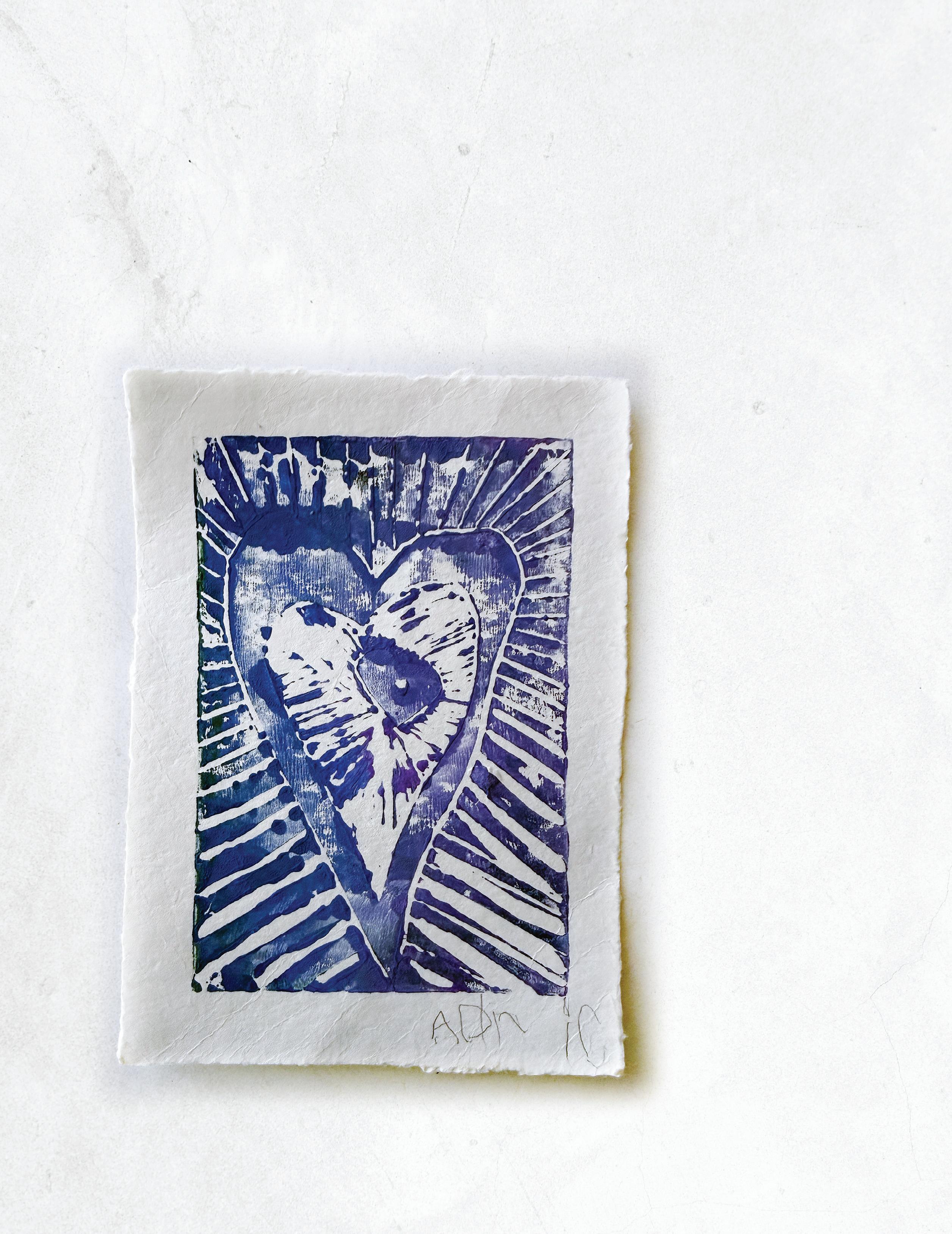 At only 5 years old, ADRIC BARNETT is already putting art into the world, like this linocut print that he designed, painted, and stamped. “I picked rainbow colors because when you put them all together, it’s like a mixed-up rainbow,” he explained. As for the “cutting” portion of the work, “Mommy helped me,” he admitted.