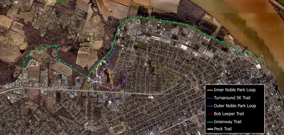 The Peck Education Trail is located on the north side of Bob Noble Park. The halfmile trail connects to the existing Nature Trail located behind the Amphitheatre with the Noble Park Trace near the Cairo Road park entrance The trail includes: