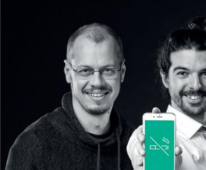 Créée en 2012 par l’ingénieur alsacien Geo rey Kretz, l’application Kwit aidant à arrêter de fumer a fait du chemin. Aujourd’hui disponible en 14 langues, sur Android et IOS (10 € par mois ou 60 € par an), elle est également reconnue et recommandée par l’Organisation mondiale de la santé, depuis le mois dernier.