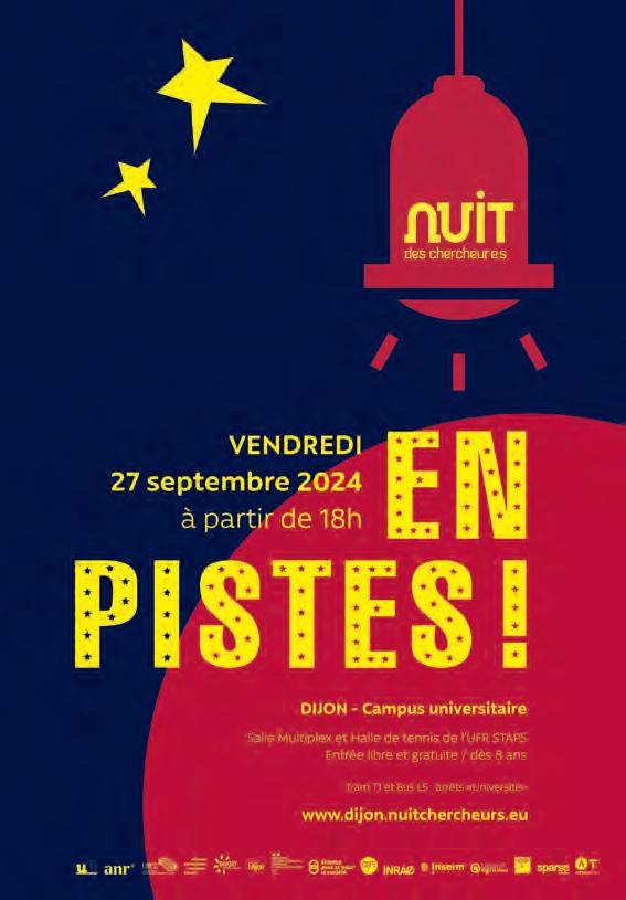Le 27 septembre prochain, sur le campus de l’université de Bourgogne, la Nuit des Chercheurs vous ouvre les inventives et tumultueuses coulisses de la Science. Au sein d’espaces scénographiés et poétiques, une soixantaine de chercheuses et de chercheurs vous feront part de leurs pérégrinations en vous associant, de façon ludique, à l’esprit de la découverte. En pistes ! Programme complet sur dijon.nuitchercheurs.eu