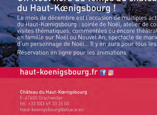 Les traditions de Noël en Alsace (22/12 à 16 h) ; Les traditions du Nouvel an en Alsace (02/01 à 16 h). Inscription à l’OT du Pays de Saverne.