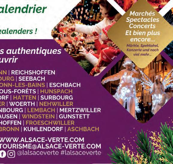 Qu’elles soient séculaires, traditionnelles ou contemporaines, réalisées en bois ou en métal, qu’elles nous plongent dans un décor local alsacien ou nous invitent à voyager dans des pays lointains, les quelque 50 installations de cette 14e édition du Sentier des crèches seront à même de vous émerveiller et d’aiguiser votre curiosité. Les bénévoles, qui se mobilisent avec passion d’année en année pour vous présenter leurs réalisations, auront également à cœur de vous faire découvrir ou redécouvrir l’histoire et les secrets de ces Krippen et des édifices qui leur sont un si bel écrin, toujours en accès libre. Programme complet sur noelies.com Du 28 novembre au 21 décembre