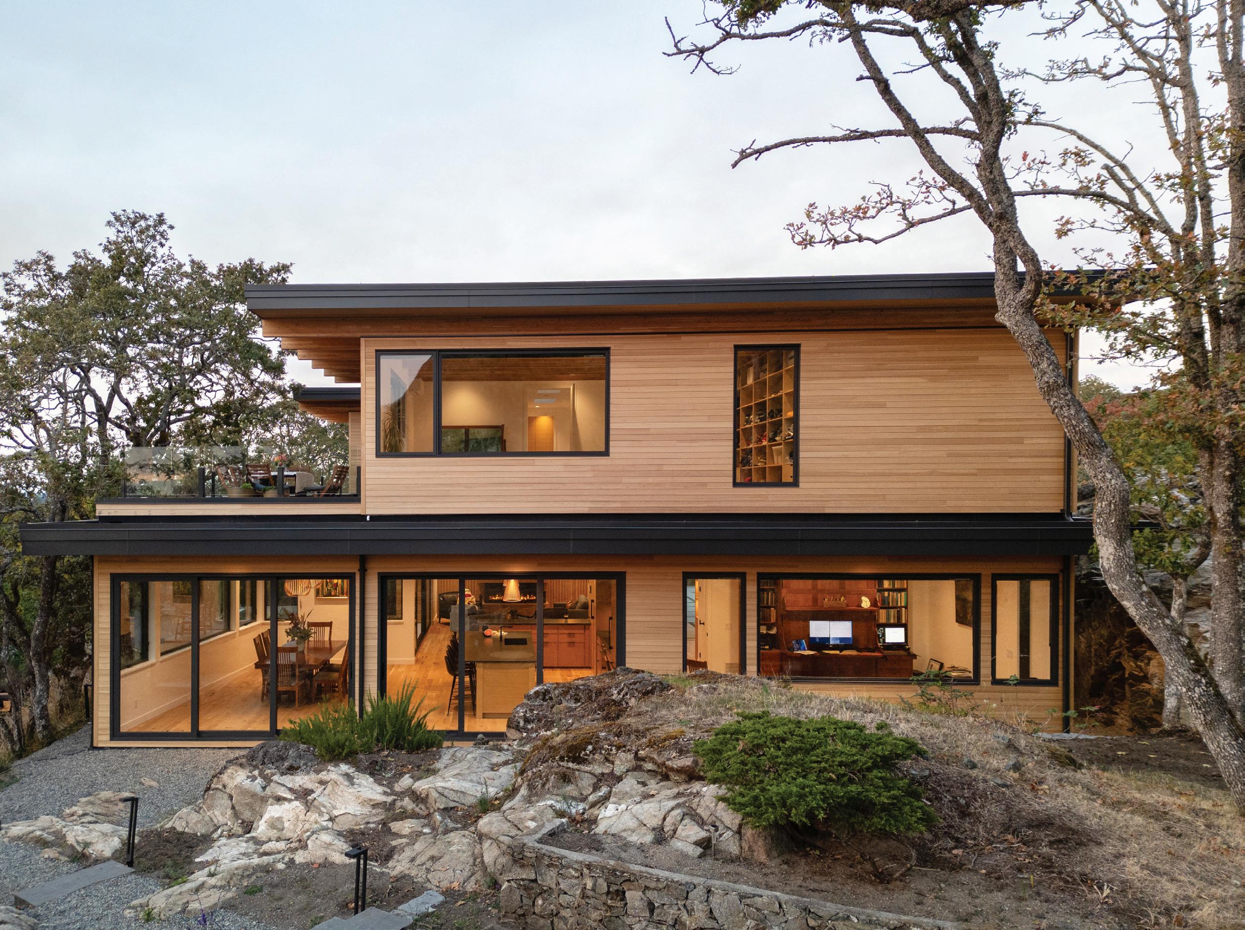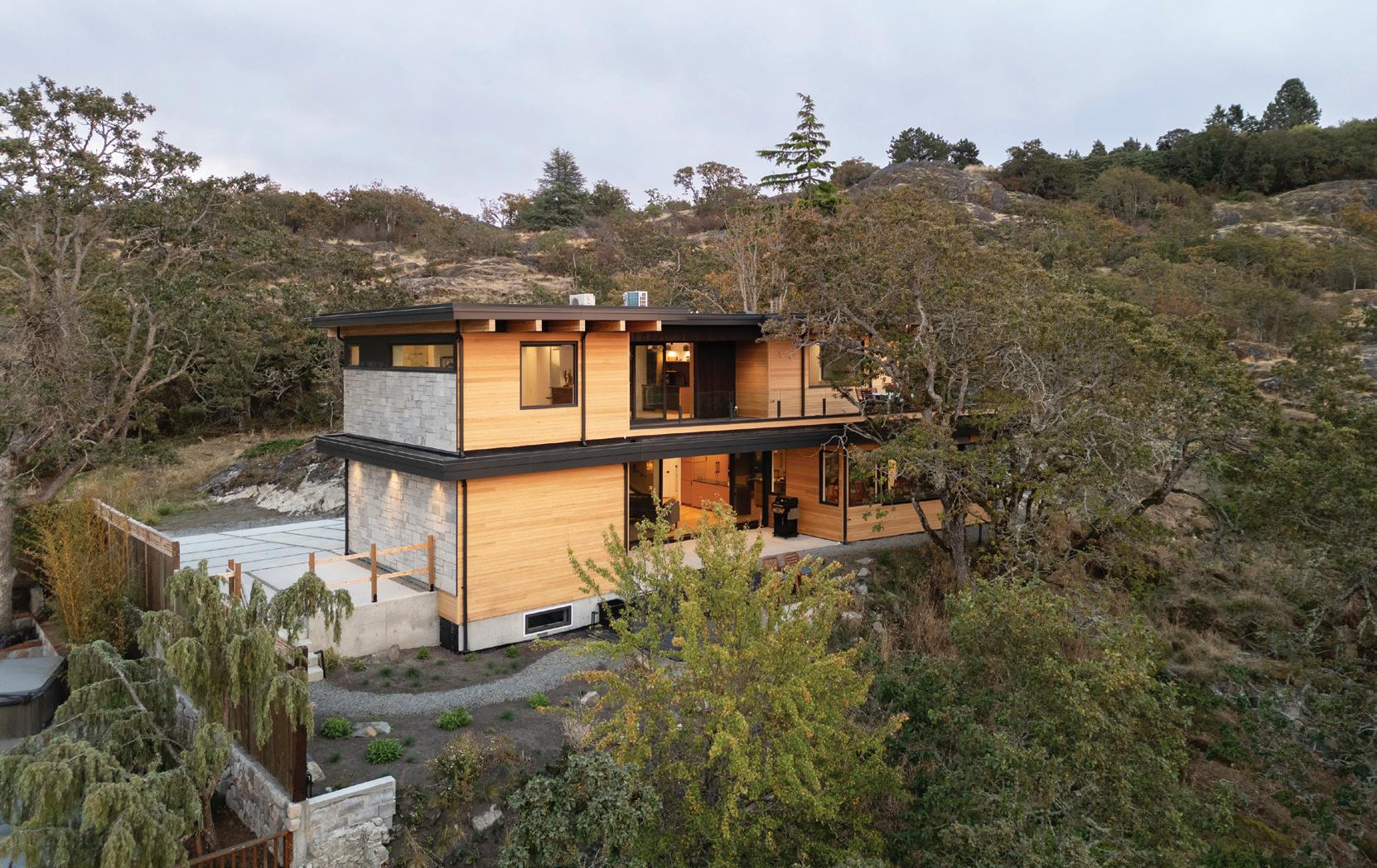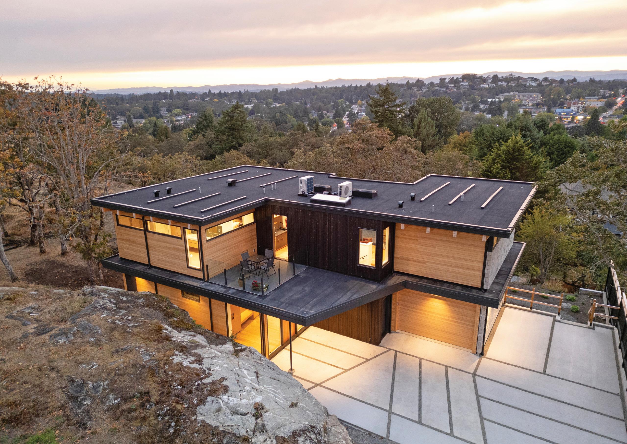 From its aerie atop Mount Tolmie, this stunning new build makes the most of its rocky location — and one incredible view.