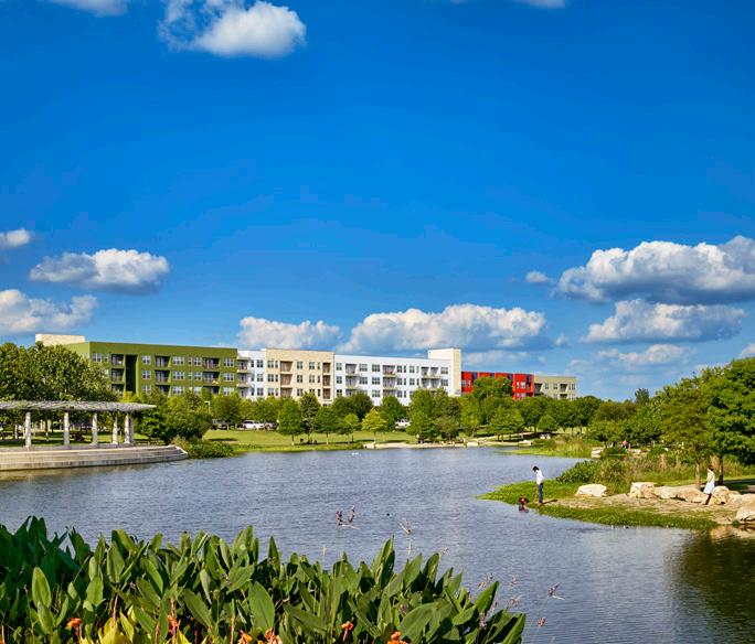 This five-story, 230,000 square foot multifamily AMLI residential project was envisioned as a cornerstone of the 700-acre Mueller mixed-use master plan – a live /work / play development in eastcentral Austin. Situated along the shores of picturesque Lake Park, featuring over 13 miles of hike and bike trails, the LEED Platinum complex was designed as both a bold backdrop for the park and a portal to the central commercial district within the development.