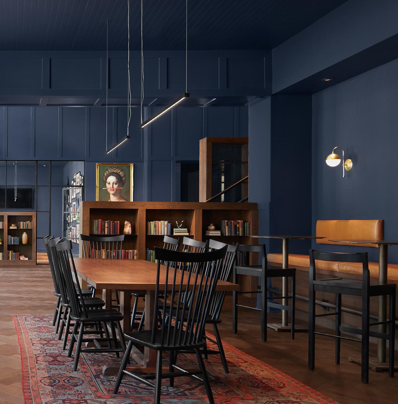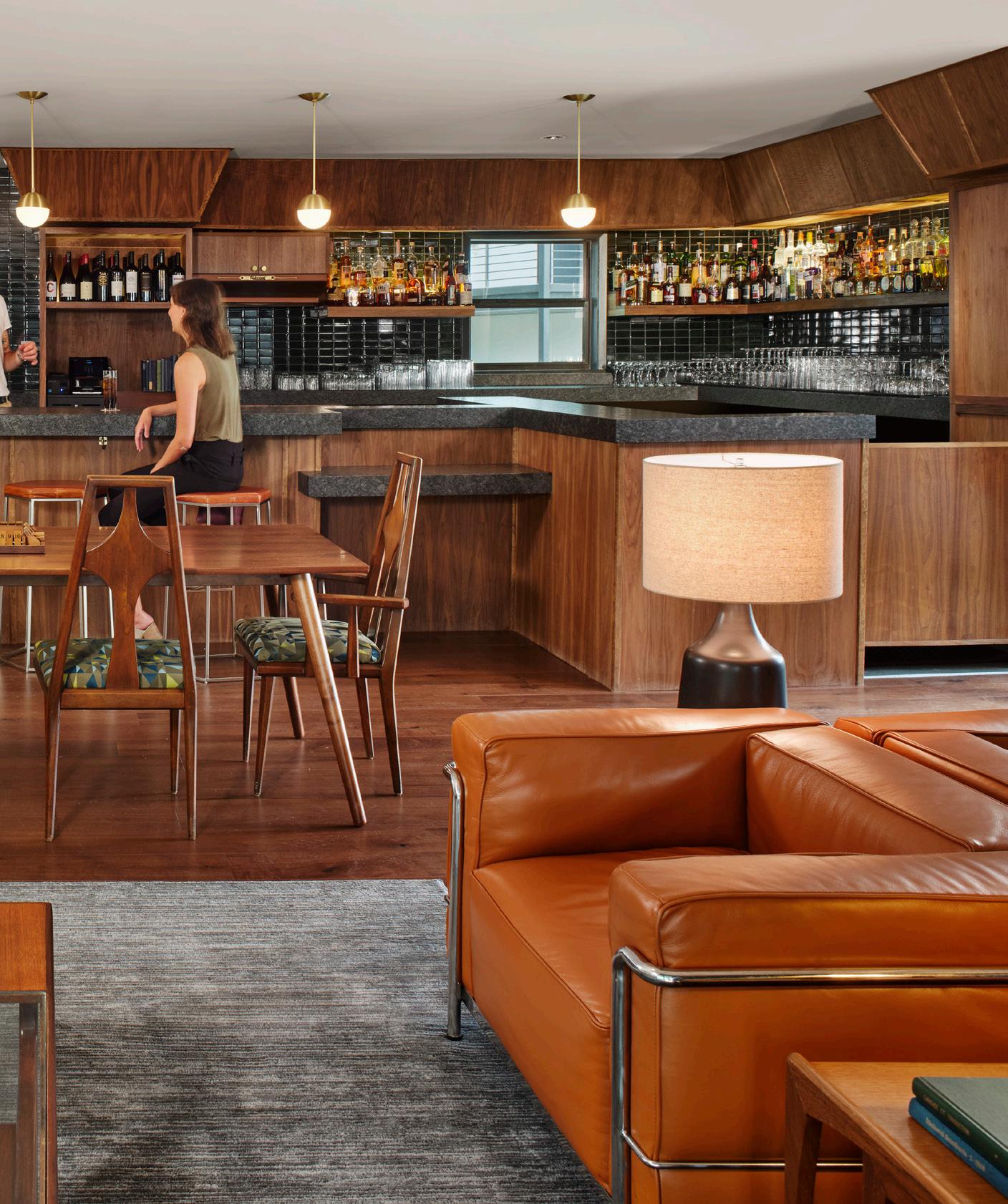 The design of amenity spaces in 1155 serve as exceptional backdrops to the scenes of resident’s everyday lives. Materials and details combine importance of place, history, and future through the use of local resources, finishes, and craftsman lighting. Layered lighting enlivens the interior and elevates the activity within when viewed from outdoor spaces. Outdoor rooms blend with the interior spaces in a manner both seamless and generous.