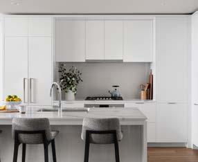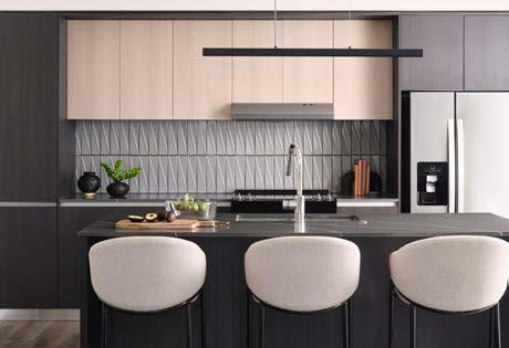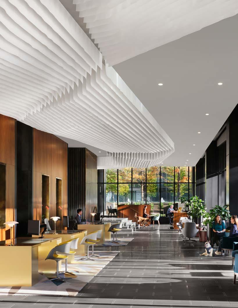 Design elements of luxury living Balancing residential scale and intimacy within an expansive floorplate became a key design challenge. The solution? A planning approach that prioritizes strong exterior connections and a material palette that adapts to each space’s function without relying on a singular motif.