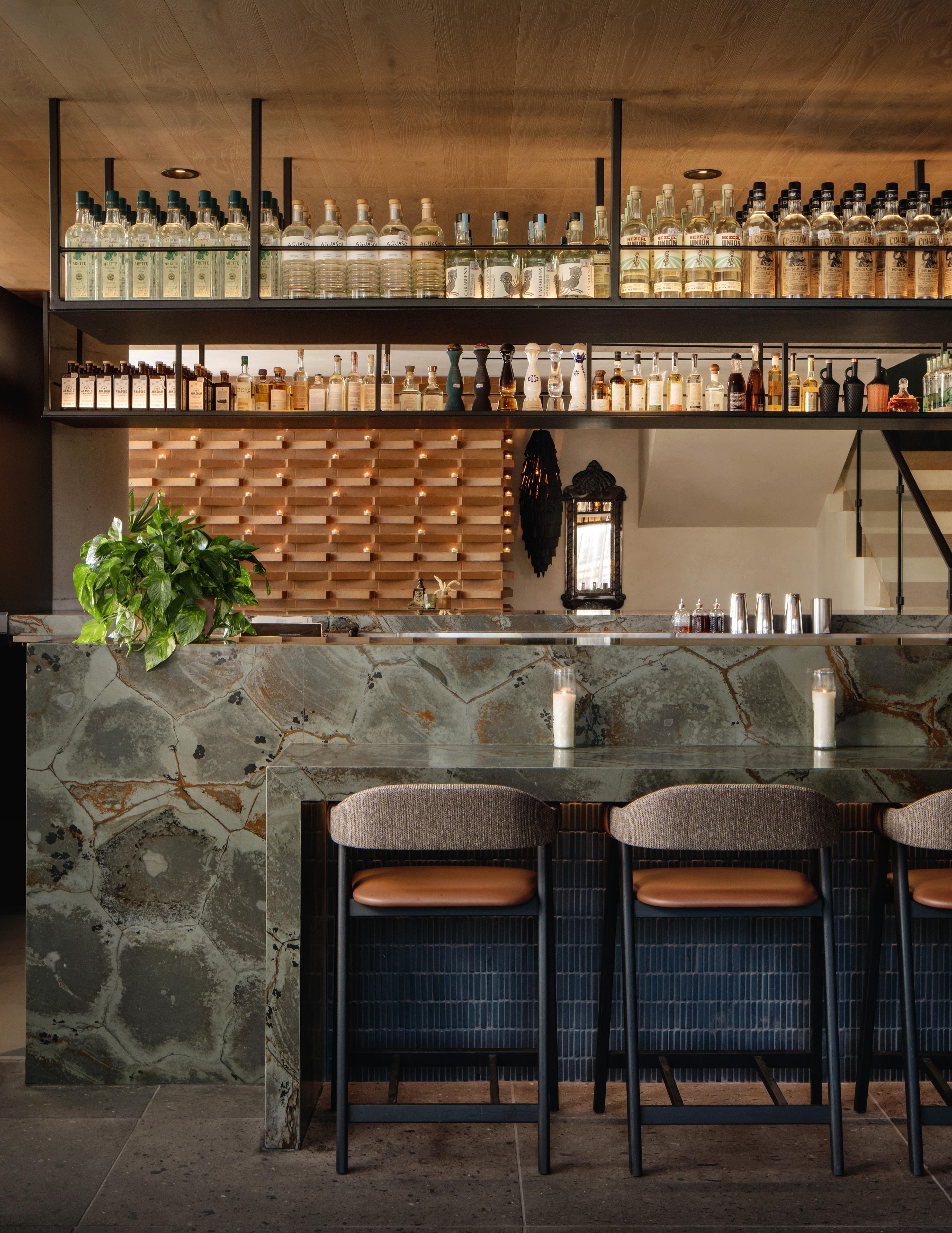 Creating a luxury dining experience within an existing highrise building demands both vision and precision. We tackled this challenge as executive architect for Tomalo, a bold new restaurant celebrating the flavors and spirit of Mexico’s Yucatán region. Located on the ground floor of 44 East—a high-rise residential tower that we designed in Austin’s Rainey district—Tomalo required smart, high-impact solutions to make the most of its tight footprint.