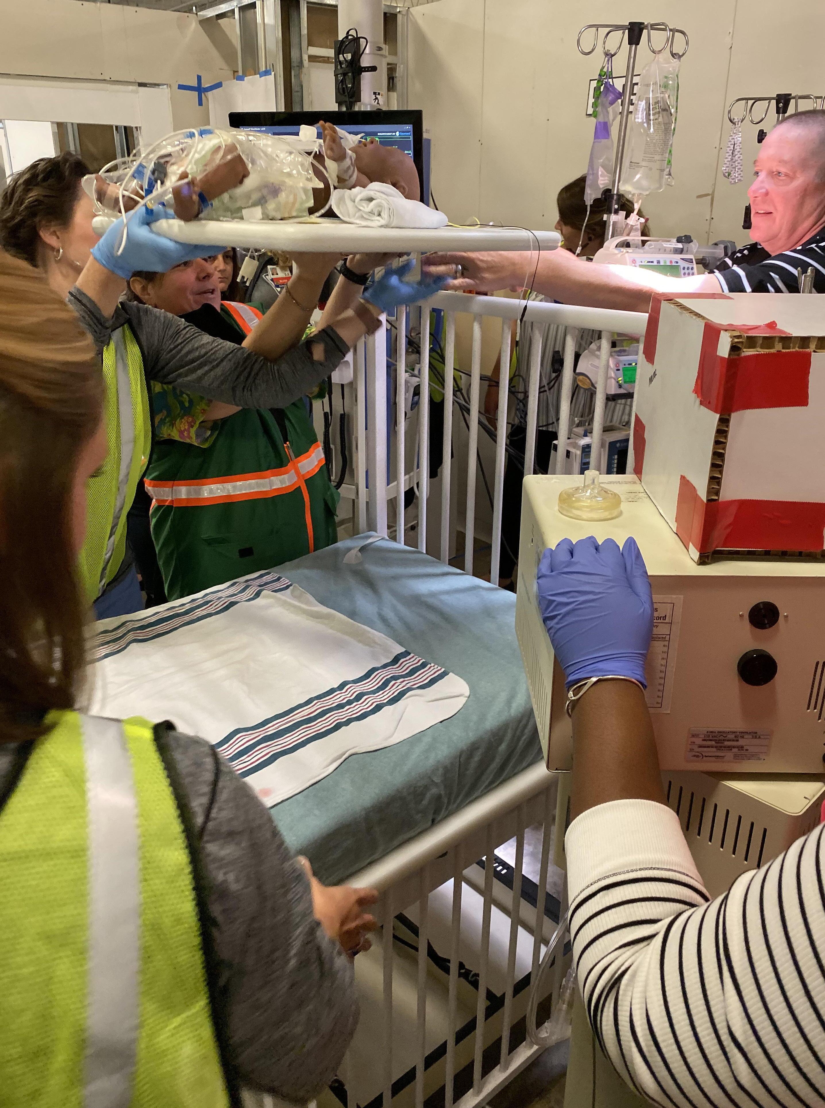 Case Example of SbHDT: During Simulation-based Hospital Design Testing in the PICU, NICU, and CICU, teams verified adjacencies of support areas (nourishment, clean supply, equipment, medication, and utility rooms) during schematic design testing. Teams tested usability and functionality of the space when gathering supplies and equipment for patient admissions or changes in patient clinical status. By actively responding to changes in vital signs, teams evaluated sightlines and visibility from nursing alcoves and care team areas. In detail design SbHDT teams evaluated placement, accessibility, and usability of mounted fixtures, equipment, and in-room furnishings. Paths of movement that impacted cross contamination were evaluated while simulating procedures. Location and orientation of electrical outlets and medical gases were evaluated for obstructions to path of movement and environmental hazards. LSTs were highimpact;3 frequently used design elements that staff interact with frequently (electrical outlets, sinks, cabinets, storage space, countertops, doorway sizes); and high-risk design elements that impact patient or staff safety (code blue buttons, sharps disposal containers). Cardiac arrest and cannulation to ECMO were clinical situations used to test adaptability of the space. Challenges were related to clearances around the surgical tables during ECMO cannulation, access to the head of the bed, and ergonomic positioning of personnel and equipment. In evaluation of all three ICUs during schematic and detail design, 79 latent conditions were identified; changes made to mitigate these conditions avoided $20 million in costs.