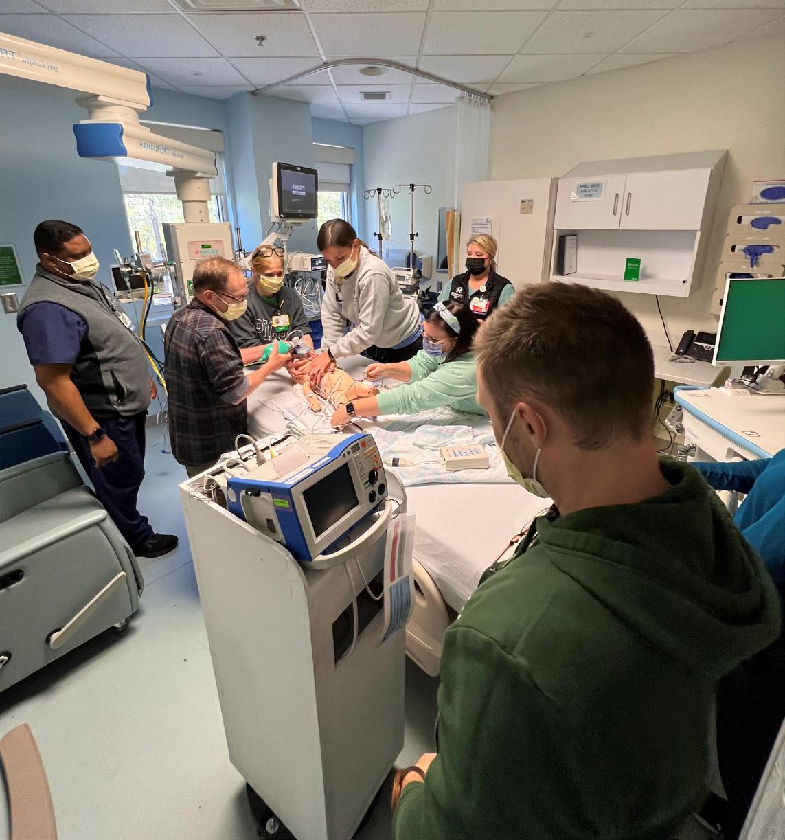 ICU team members actively perform resuscitation to test and evaluate the proposed ergonomic map in a working system