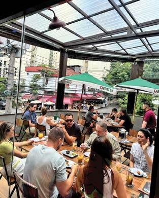 os eventuais dias chuvosos, garante o conforto dos clientes que podem acompanhar o vai e vem da rua. Mesas externas completam o espaço nas laterais. Telas de TV pelos salões permitem que os clientes possam acompanhar os jogos de futebol e outros eventos esportivos.