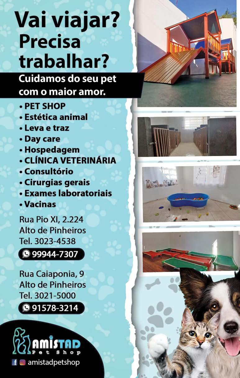 No pet shop e clínica veterinária, Gigi explica que os tutores encontram todos os serviços necessários como vacinação, consultas, acupuntura, medicamentos veterinários, além de serviço de banho e tosa. Também tem produtos para os pets como ração dos melhores fabricantes, biscoitos, brinquedos e tudo o que o bicho precisa para seu lazer e alimentação. A Amistad dispõe de serviço de leva e traz e conta com equipe de profissionais que sabem e gostam de tratar os animais.