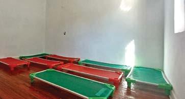 com espaço para correr e brincar, “temos brinquedos como um túnel e um grande escorregador que serve para enriquecimento ambiental e para estimular o gasto de energia. Além disso, tem uma piscina que é usada nos dias de calor e os animais se sentem mais confortáveis. Mantemos o piso úmido para que não surjam assaduras nas patinhas em dias quentes. Uma cascata é outro equipamento que os cães podem desfrutar. Muitos deles adoram mergulhar”, lembra Gigi.