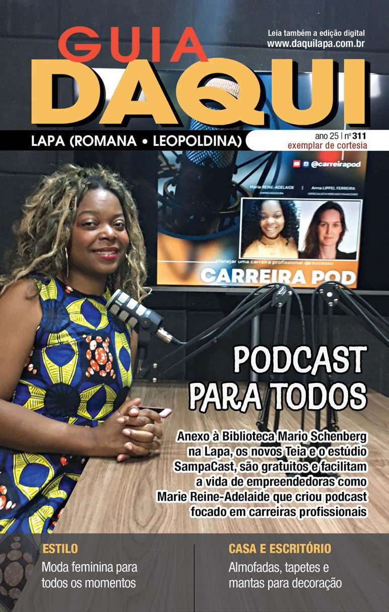 Entrevistas, séries, lives e outros formatos, e possibilidades de monetização de canais. O podcast @carreirapod é gravado no SampaCast Lapa. Voltado para carreiras profissionais é comandado por Marie Reine-Adelaide e Anna Lippel Ferreira. “Aqui encontramos a estrutura