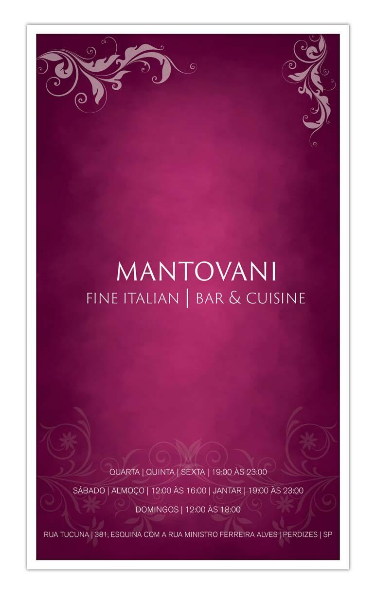 Mantovani Fine Italian Bar & Cuisine Rua Tucuna, 381 Esquina com Ministro Ferreira Alves